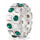 Sterling Silver Stepping Stones Beads with Emerald and Clear Austrian Crystal