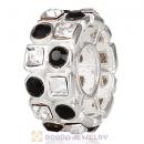 Sterling Silver Stepping Stones Beads with Black Diamond and Clear Austrian Crystal