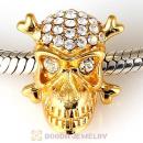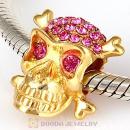 Sterling Silver Gold Plated Skull Beads with Rose Austrian Crystal