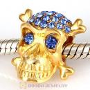 Sterling Silver Gold Plated Skull Beads with Sapphire Austrian Crystal