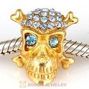 Sterling Silver Gold Plated Skull Beads with Aquamarine Austrian Crystal