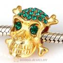 Sterling Silver Gold Plated Skull Beads with Emerald Austrian Crystal