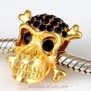 Sterling Silver Gold Plated Skull Beads with Black Diamond Austrian Crystal
