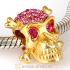 Sterling Silver Gold Plated Skull Beads with Light Siam Austrian Crystal