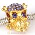 Sterling Silver Gold Plated Skull Beads with Amethyst Austrian Crystal