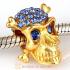 Sterling Silver Gold Plated Skull Beads with Aquamarine Austrian Crystal
