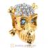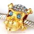 Sterling Silver Gold Plated Skull Beads with Sapphire Austrian Crystal