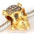 Sterling Silver Gold Plated Skull Beads with Jet Austrian Crystal