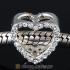 European Sterling Silver Heart Beads with Light Peach Austrian Crystal