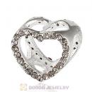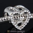 European Sterling Silver Heart Beads with Clear Austrian Crystal