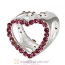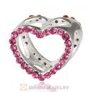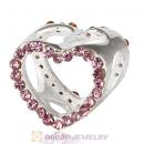 European Sterling Silver Heart Beads with Rose Austrian Crystal