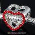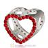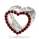 European Sterling Silver Heart Beads with Siam Austrian Crystal