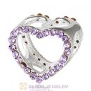 European Sterling Silver Heart Beads with Light Amethyst Austrian Crystal
