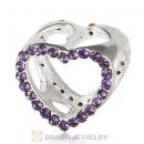 European Sterling Silver Heart Beads with Violet Austrian Crystal
