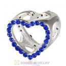 European Sterling Silver Heart Beads with Sapphire Austrian Crystal