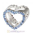 European Sterling Silver Heart Beads with Light Sapphire Austrian Crystal