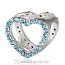 European Sterling Silver Heart Beads with Aquamarine Austrian Crystal