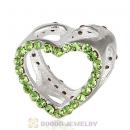 European Sterling Silver Heart Beads with Peridot Austrian Crystal