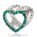 European Sterling Silver Heart Beads with Emerald Austrian Crystal