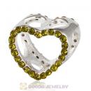 European Sterling Silver Heart Beads with Olivine Austrian Crystal