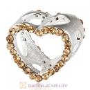 European Sterling Silver Heart Beads with Light Colorado Topaz Austrian Crystal