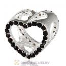 European Sterling Silver Heart Beads with Black Diamond Austrian Crystal