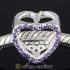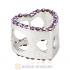 European Sterling Silver Heart Beads with Violet Austrian Crystal