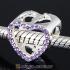 European Sterling Silver Heart Beads with Amethyst Austrian Crystal