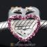 European Sterling Silver Heart Beads with Rose Austrian Crystal