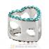 European Sterling Silver Heart Beads with Aquamarine Austrian Crystal