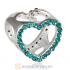 European Sterling Silver Heart Beads with Emerald Austrian Crystal
