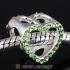 European Sterling Silver Heart Beads with Emerald Austrian Crystal