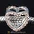 European Sterling Silver Heart Beads with Clear Austrian Crystal