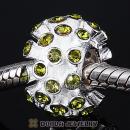 Sterling Silver Loose Pave Beads with Peridot Austrian Crystal