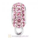 European Sterling Silver Pave Beads with Rose Austrian Crystal