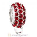 European Sterling Silver Pave Beads with Siam Austrian Crystal