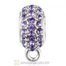 European Sterling Silver Pave Beads with Violet Austrian Crystal