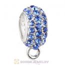European Sterling Silver Pave Beads with Sapphire Austrian Crystal