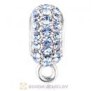 European Sterling Silver Pave Beads with Light Sapphire Austrian Crystal