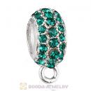 European Sterling Silver Pave Beads with Emerald Austrian Crystal