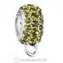 European Sterling Silver Pave Beads with Olivine Austrian Crystal