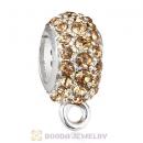 European Sterling Silver Pave Beads with Light Colorado Topaz Austrian Crystal