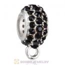 European Sterling Silver Pave Beads with Jet Austrian Crystal