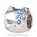European Style Sterling Silver KT Cat Bead with Aquamarine Austrian Crystal
