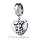 Antique Sterling Silver Hare Chinese zodiac Heart Love Dangle Beads European Style