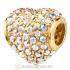 Gold Plated Sterling Pave Heart with Light Peach Austrian Crystal Charm