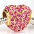 Gold Plated Sterling Pave Heart with Fuchsia Austrian Crystal Charm