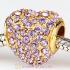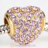 Gold Plated Sterling Pave Heart with Light Amethyst Austrian Crystal Charm