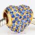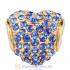 Gold Plated Sterling Pave Heart with Blue Zircon Austrian Crystal Charm