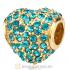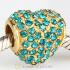 Gold Plated Sterling Pave Heart with Aquamarine Austrian Crystal Charm